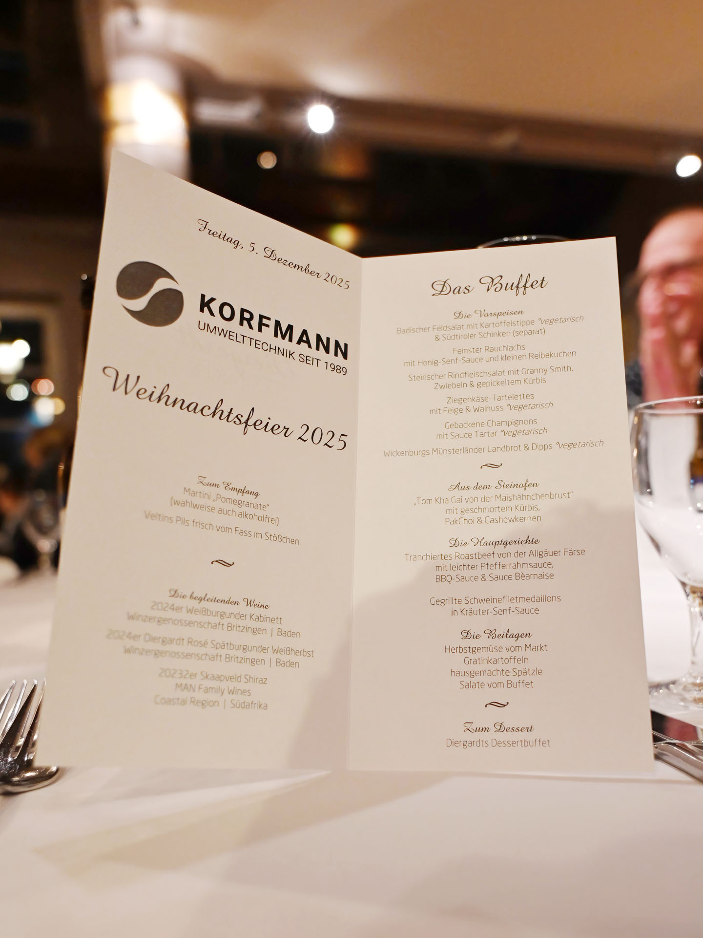 Am 5. Dezember 2025 stand bei der Korfmann GmbH alles im Zeichen von Gemeinschaft, Wertschätzung und weihnachtlicher Vorfreude. Bei der Weihnachtsfeier im Restaurant Diergardt im Kühlen Grunde verbrachten alle Mitarbeiterinnen und Mitarbeiter einen rundum gelungenen Abend in entspannter und herzlicher Atmosphäre.